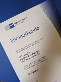 Vor 25 Jahre habe ich Ulli Lansche Multimedia Lösungen als Gewerbe angemeldet. Von der IHK Region Stuttgart Bezirkskammer Ludwigsburg habe ich dafür eine Ehrenurkunde erhalten.